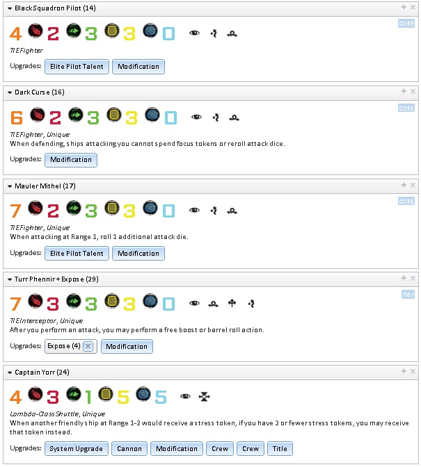 Oh – Squad listing courtesy of here and no copyright infringement to them, FFG, George Lucas, Righthaven or any other entity is intended.