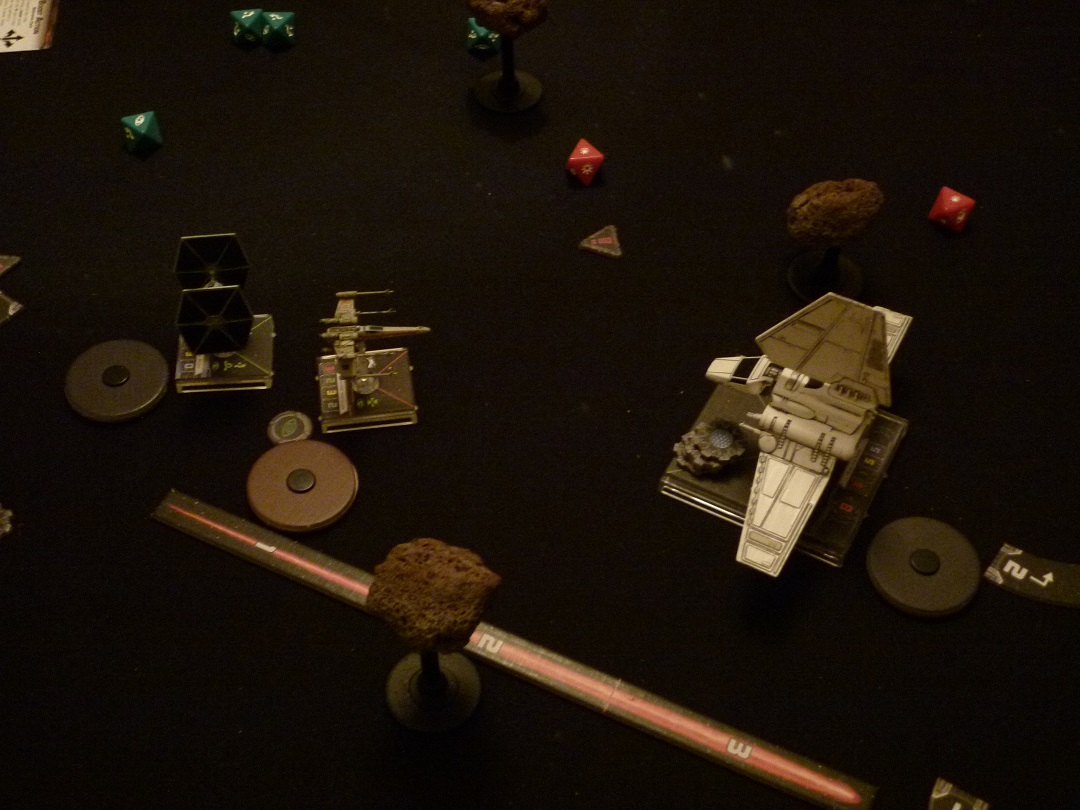 Needless to say Wedge is a Lambda Class Shuttle killing machine and made short work of Black Squadron Pilot within two or three turns of taking out the shuttle.